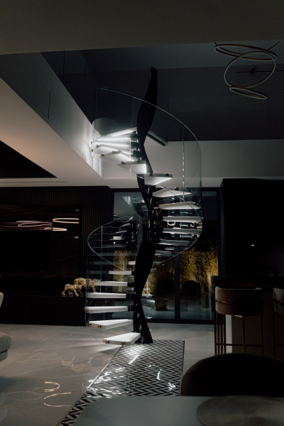 Schody Spiralne marki KAISER to unikat na rynku , stanowiący centralny punkt najlepszych wnętrz w Polsce i Europie. Za finezyjnym kształtem konstrukcji schodów podąża balustrada z giętego szkła. Stopnie z drewna lub szkła oraz pełna dowolność kolorystyczna dają architektom ogromne możliwości aranżacji.